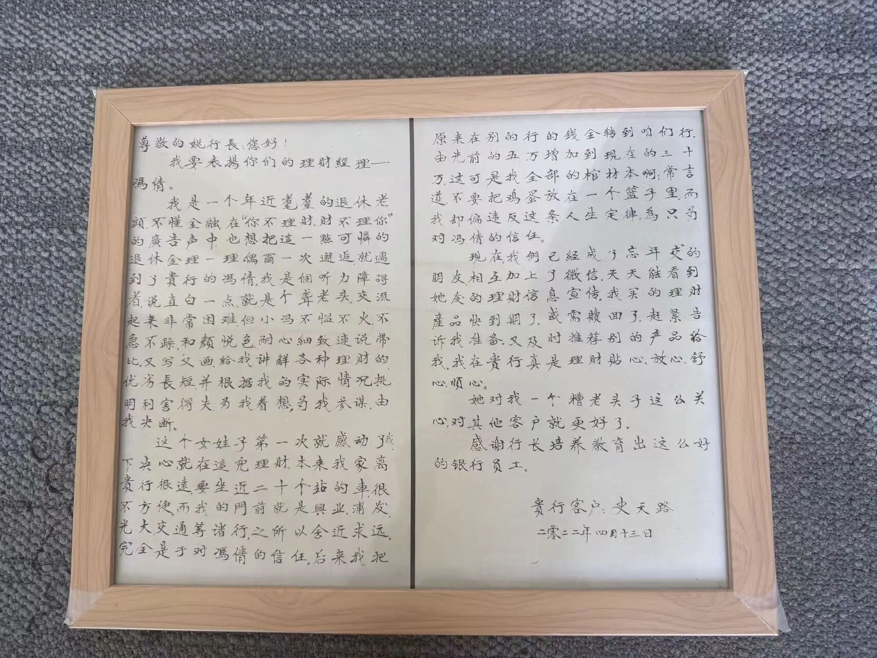 老人手寫表揚信