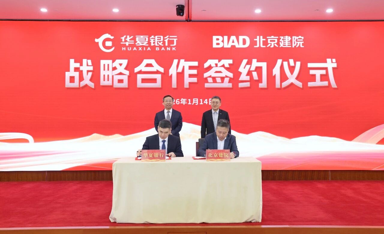 1月14日,華夏銀行與北京市建築設計研究院股份有限公司(以下簡稱“北京建院”)開展工作座談並簽署戰略合作協議。北京建院黨委書記、董事長徐全勝,華夏銀行黨委書記、董事長楊書劍,黨委副書記郭鵬,黨委常委、副行長劉瑞嘉出席活動。北京建院黨委常委、總會計師張艷釗,華夏銀行黨委常委、副行長唐一鳴代表雙方簽約。