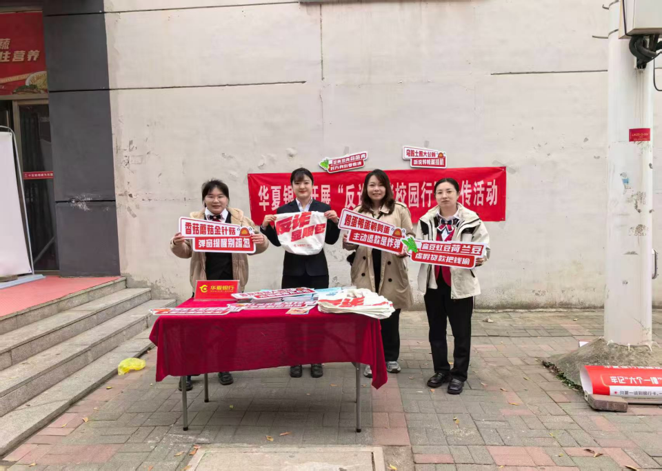 從課堂講座到操場展位,從餐廳走廊到圖書館一角,華夏銀行在學校支援下,精心選擇人流密集地帶開展反詐溫馨提示。