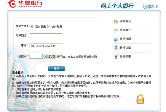 華夏銀行網上個人銀行證書版具有高保密高強度的安全功能,不僅採用美國VeriSign公司的SSL協議進行128位的高強度加密,同時,還應用中國金融認證中心(CFCA)的數字證書進行加密和簽名,確保客戶的資金安全。主要安全措施有: